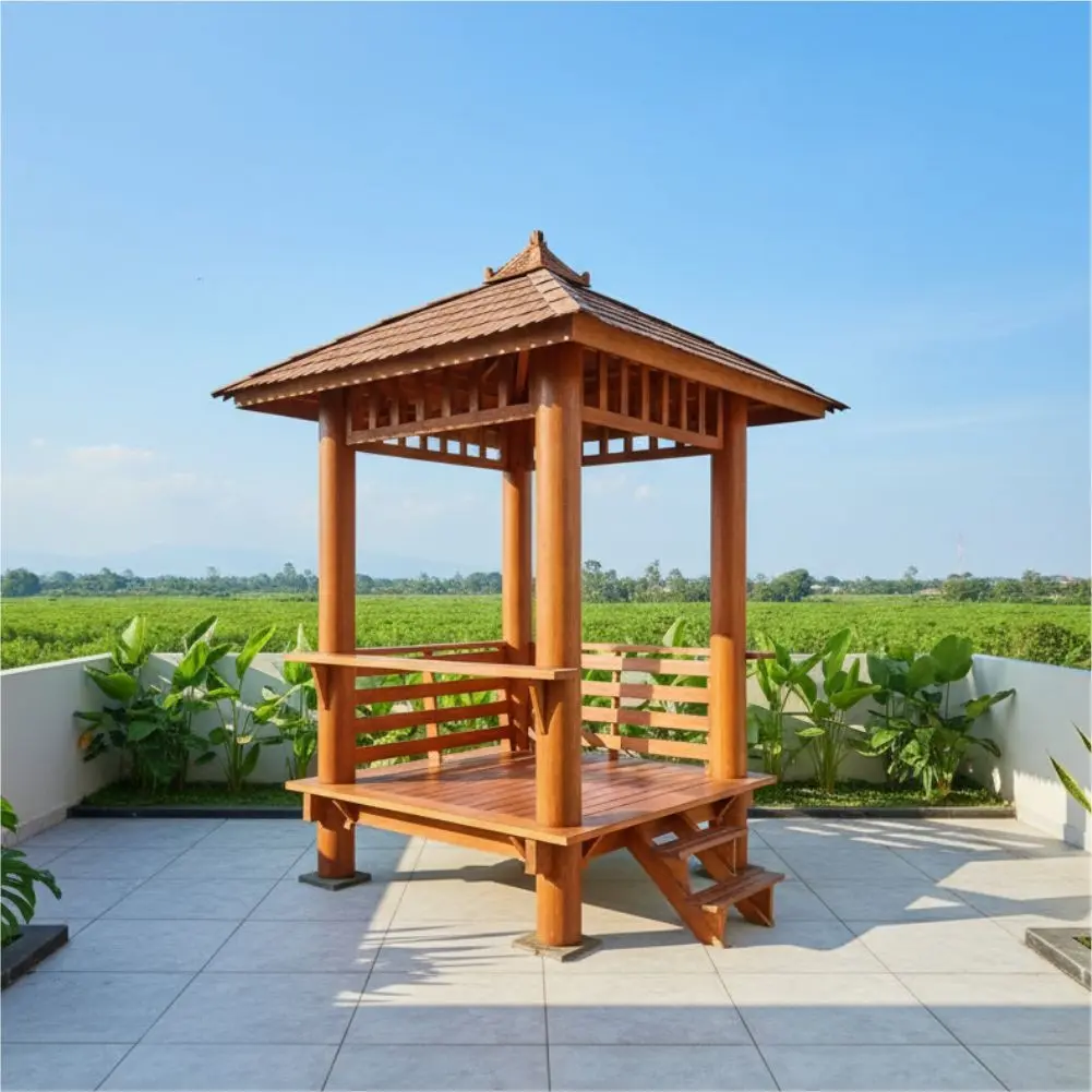 Gazebo Candraloka – Kualitas dan seni kayu khas Jepara yang diakui internasional, Gazebo Candraloka dirancang dengan sentuhan desain modern dan standar produksi internasional. Setiap detail dikerjakan presisi untuk memastikan kualitas ekspor, kekuatan struktur, dan tampilan yang elegan. Hubungi kami sekarang untuk mulai proyek Anda dan dapatkan penawaran terbaik.
